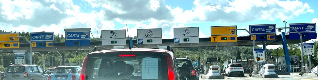 One good thing though – this toll entryway that got us is into such trouble the first time (creating that long lineup of gesticulating Italian men drivers behind us) did not get us this time. Which line would you choose?