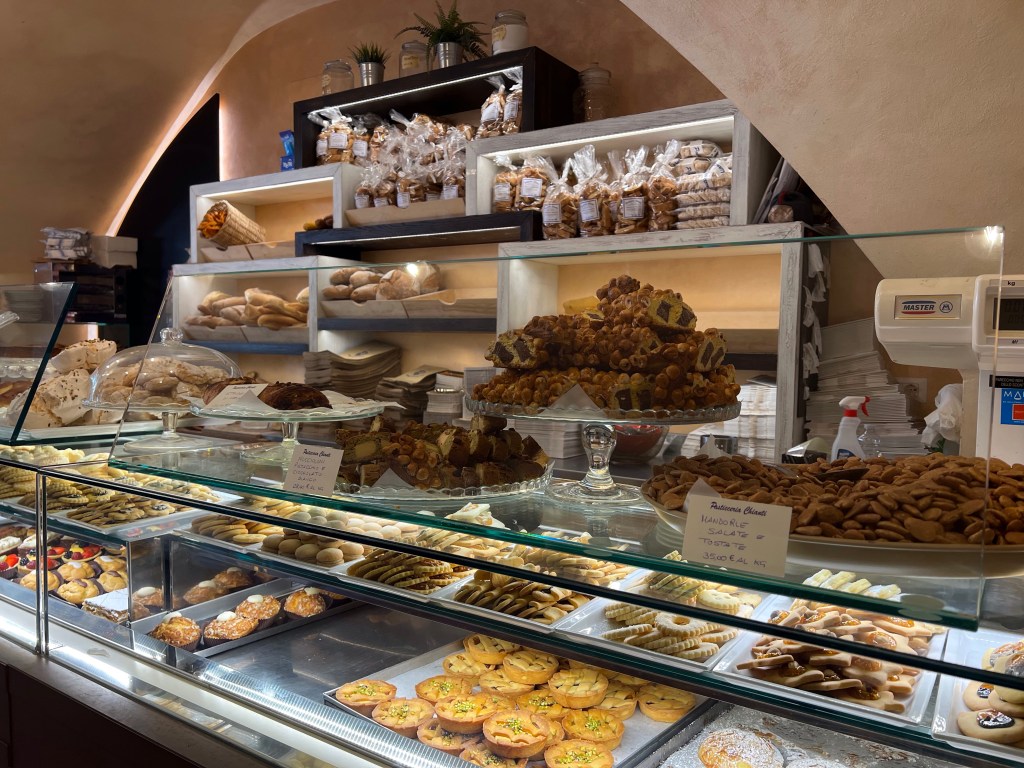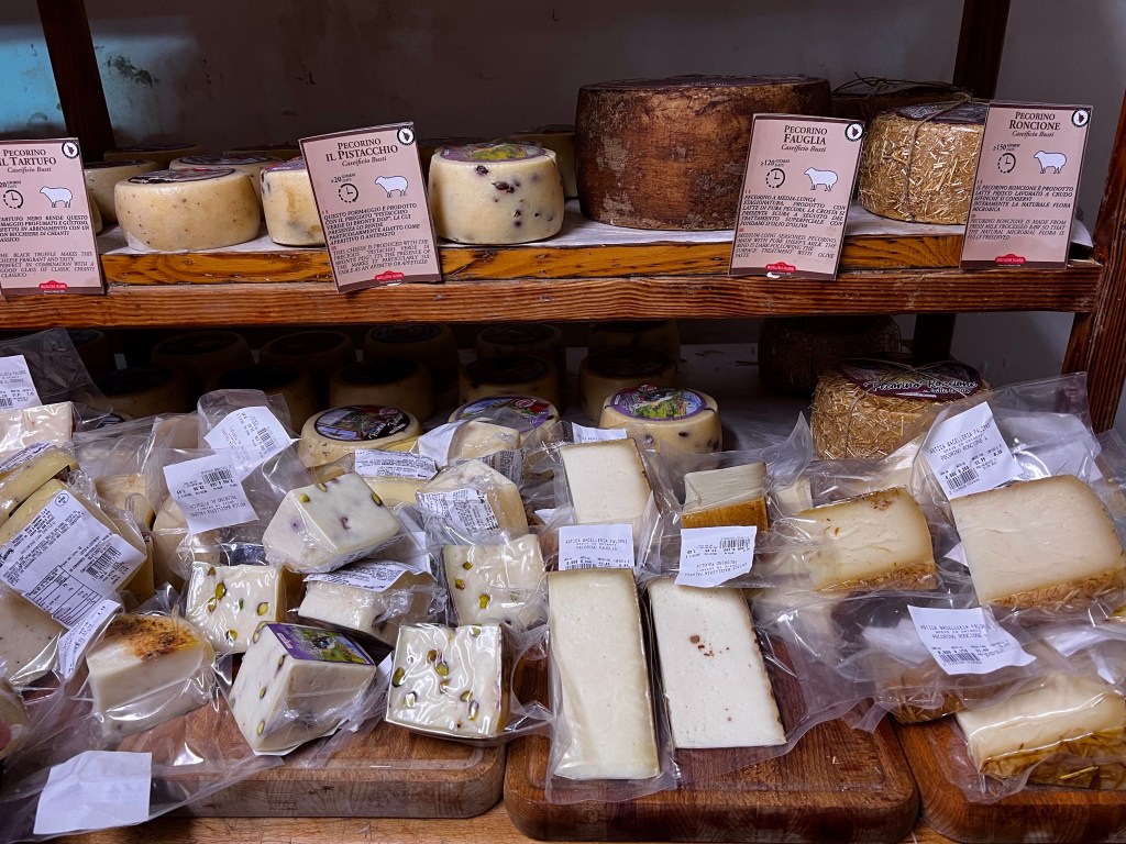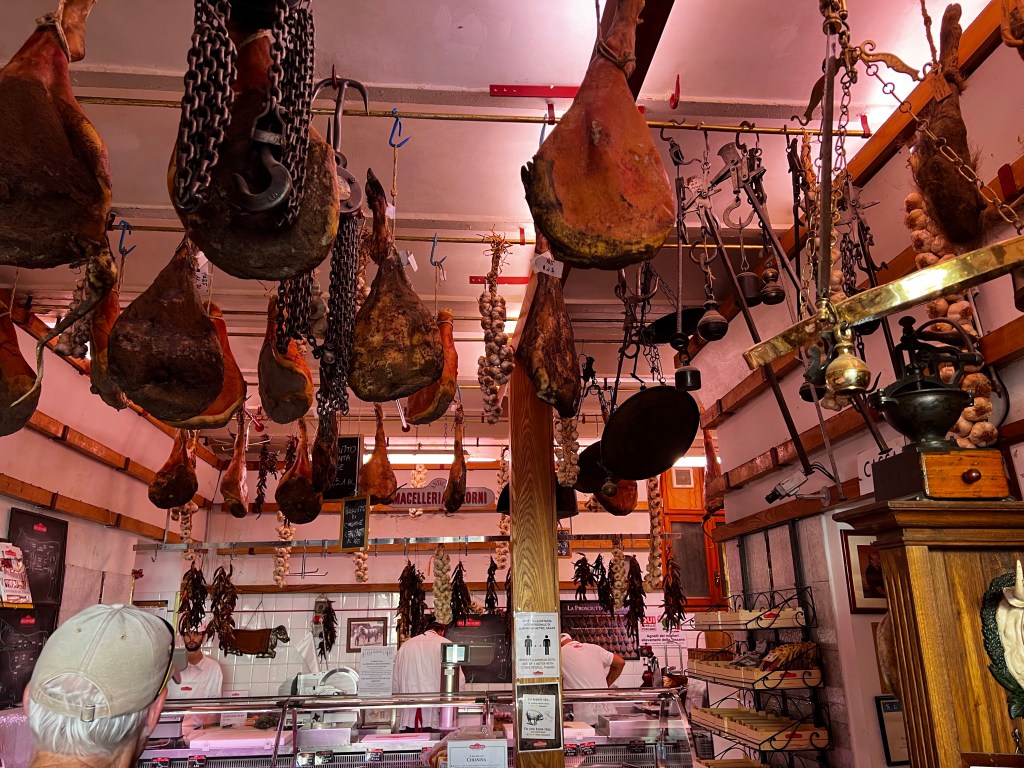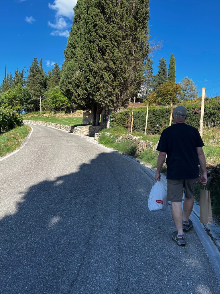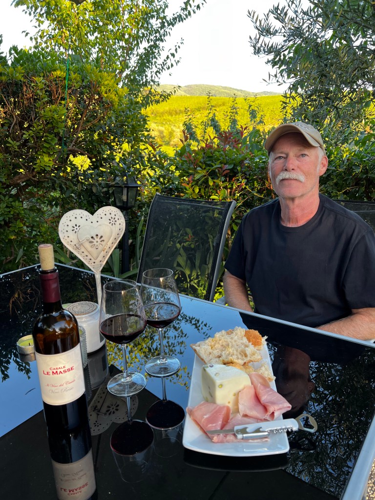 When Don realized that we don’t have to drink all the wine in one day, we decided to pick up some charcuterie items for a do it yourself dinner back at our place. Got some prociutto cotto and pecorino cheese with pistachio nuts at the butcher’s and a giant chunk of foccaccia and biscotti from the bakery and we headed back up the hill to our little piece of heaven.