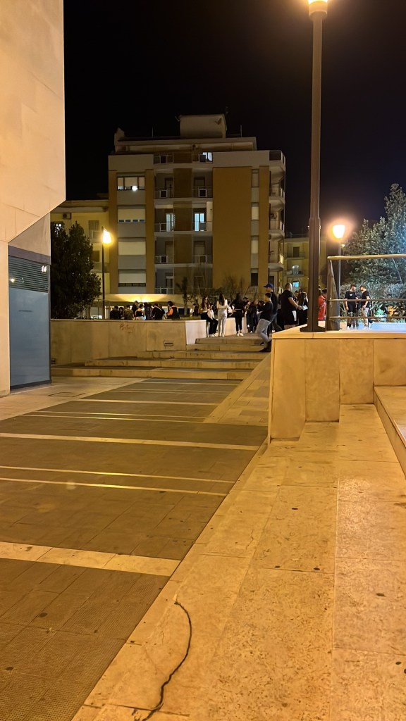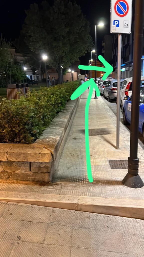 However, we do eventually find the car parkade. This is promising. Relieved, we get our suitcases out, determine that we pay when we leave, and head up to the square. Where there are about a hundred teens and preteens having a loud meet up sesh. Now – where do we go from here? I do have a map, but the map doesn’t show the name of the car park (and there are several) or the name of the square.