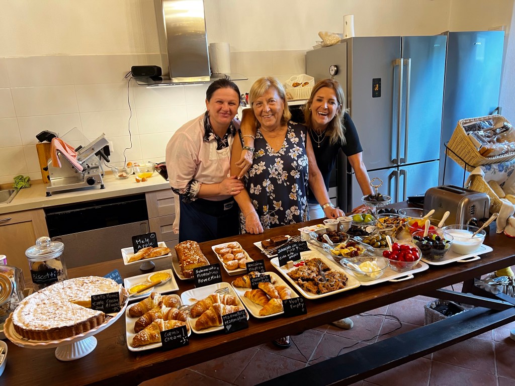 Gabby, Elizabet (Mamma) and Stefania and the amazing breakfast spread at Casale Le Masse