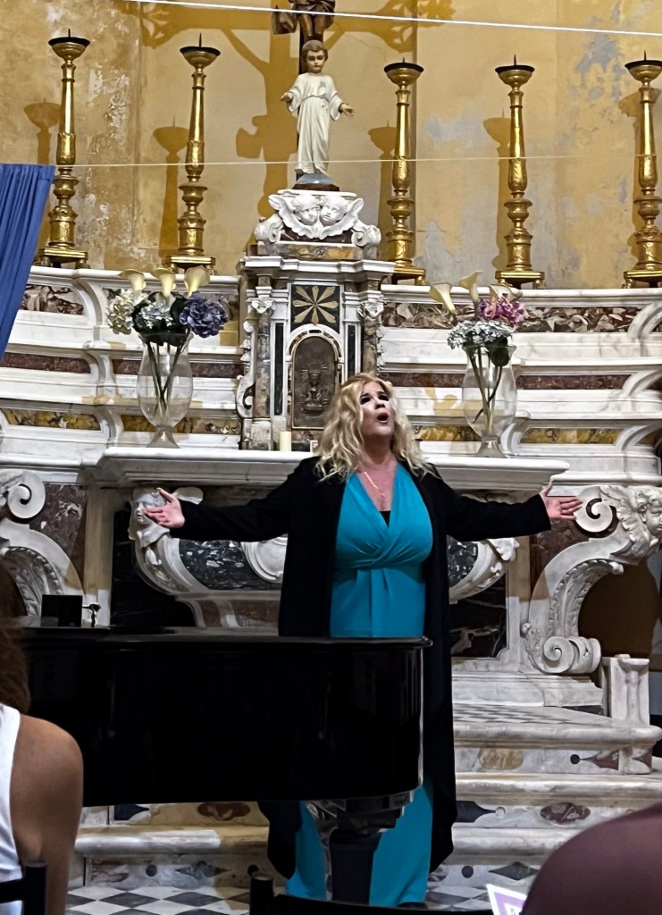 Then it was time to get the train to Vernazza for our concert. There was a little confusion as to exactly where the concert was to be held. We knew it was behind the church, but that was a bit of a maze in itself. I saw a guy come out of a private gate and asked, in my best Italian, I said, “una demanda, dove sanctuario s.s. Trinita?” (a question, where is the” etc. And he replied, “I don’t know, that’s what I am looking for too!”. So we added one more to our parade.