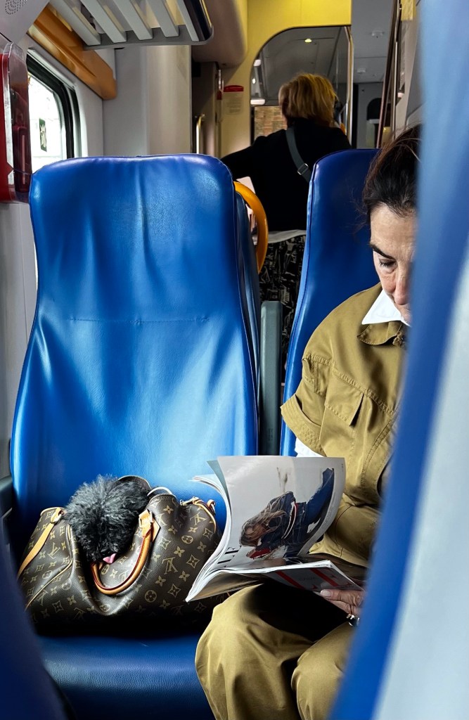 All went according to plan, and we even made our 5 minute train connection enroute to Florence. This lady had a small dog in her designer purse: