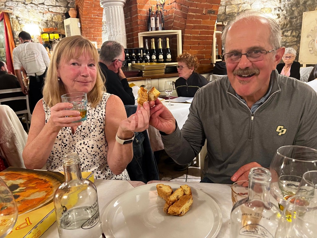The husband came home late in the afternoon – apparently he runs a company that supplies food for ten of the airlines out of Palermo airport. He showed us photos of his facility and a sample of his packaged cannelloni – it looks so good. Unfortunately, Swiss Air is not one of his customers. I let him know that he should try to get them because their food was non bene on the flight over. He’s going to work on that.