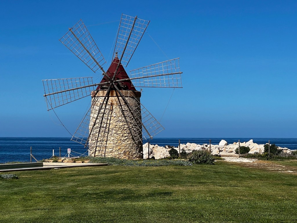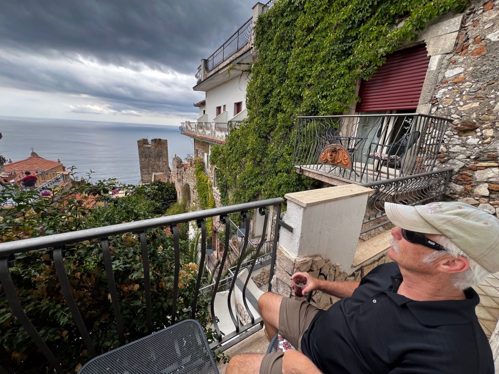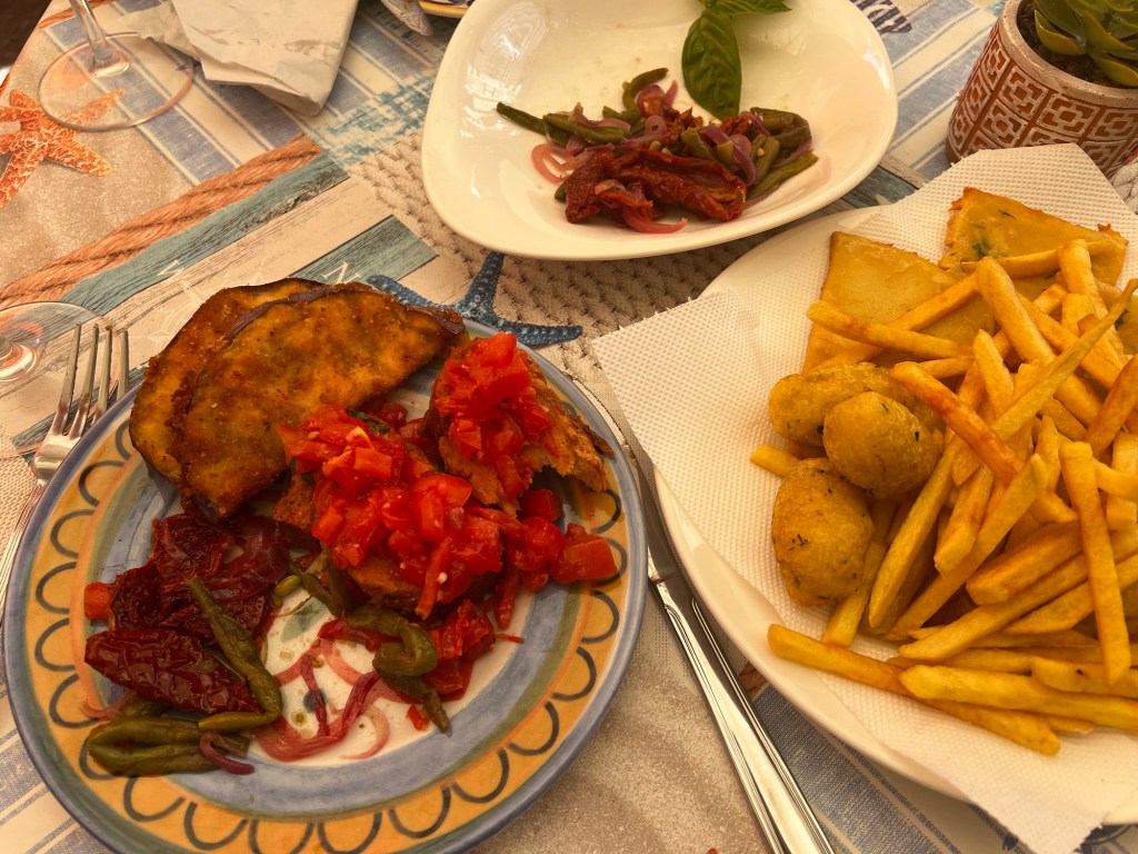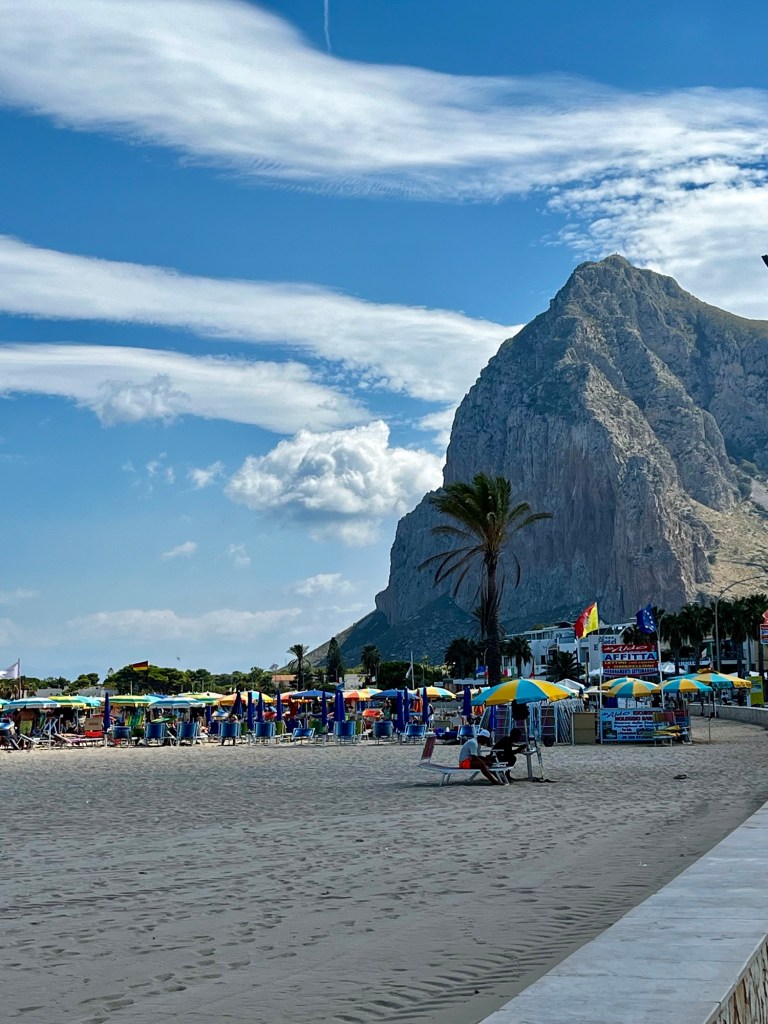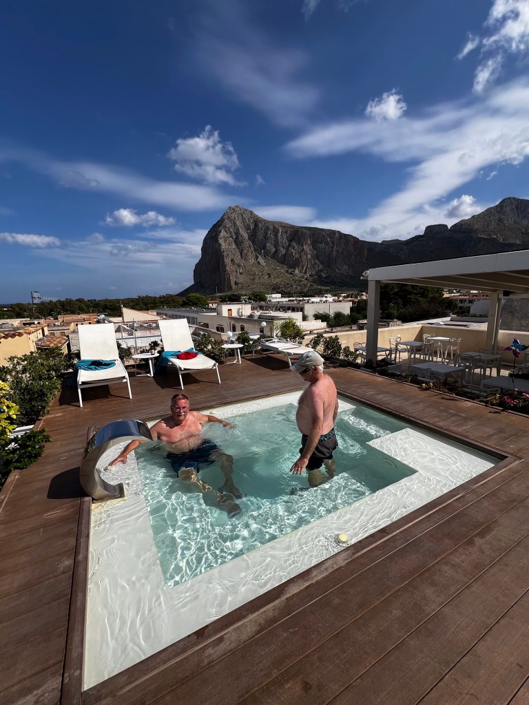 After dropping Joan and Mike off at the airport, we headed to a beachfront oasis for our last day in Sicily. A bit of confusion for the taxi driver when he tried to drop us off in the middle of nowhere – until I showed him the photo from the booking – it’s on the beach! (How hard can that be to find in a tiny community close to the airport?).